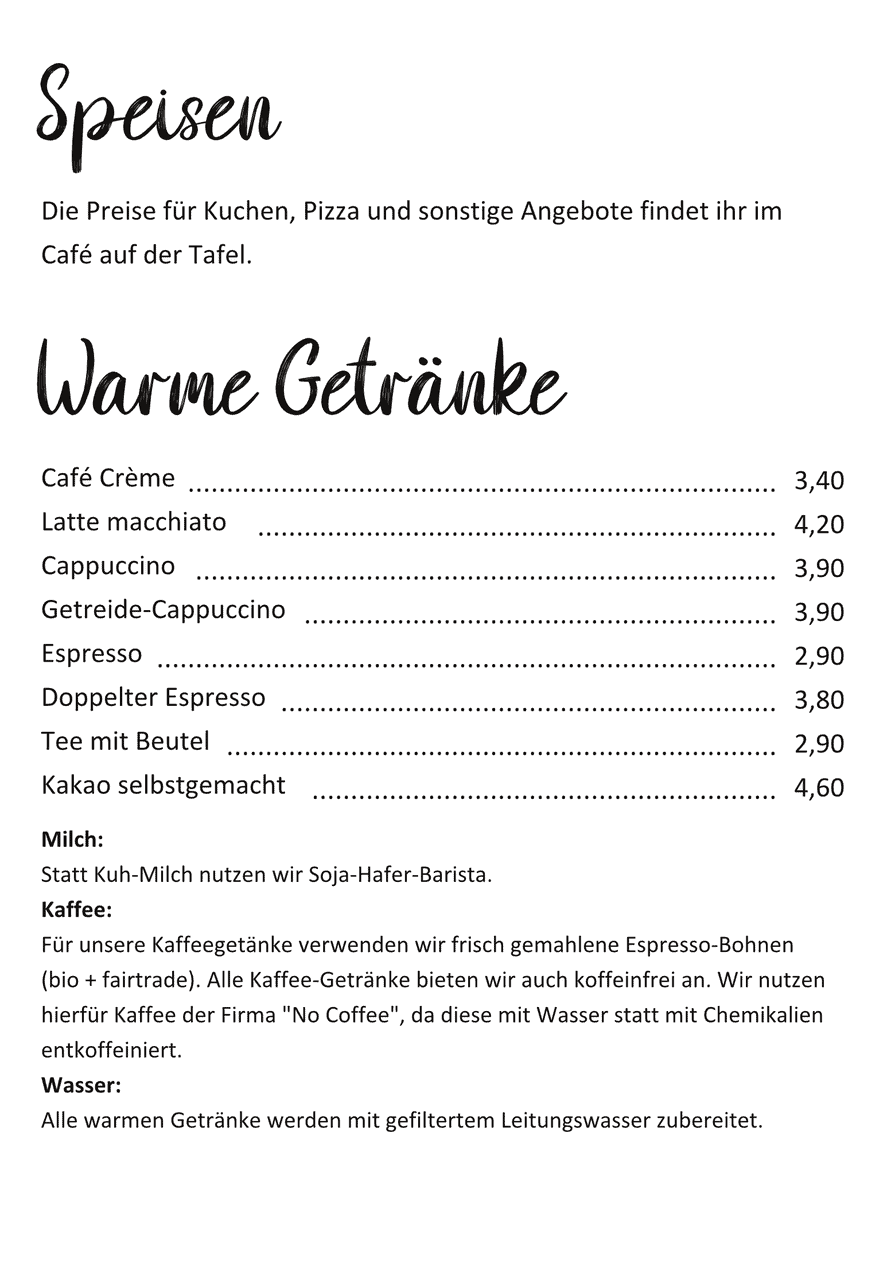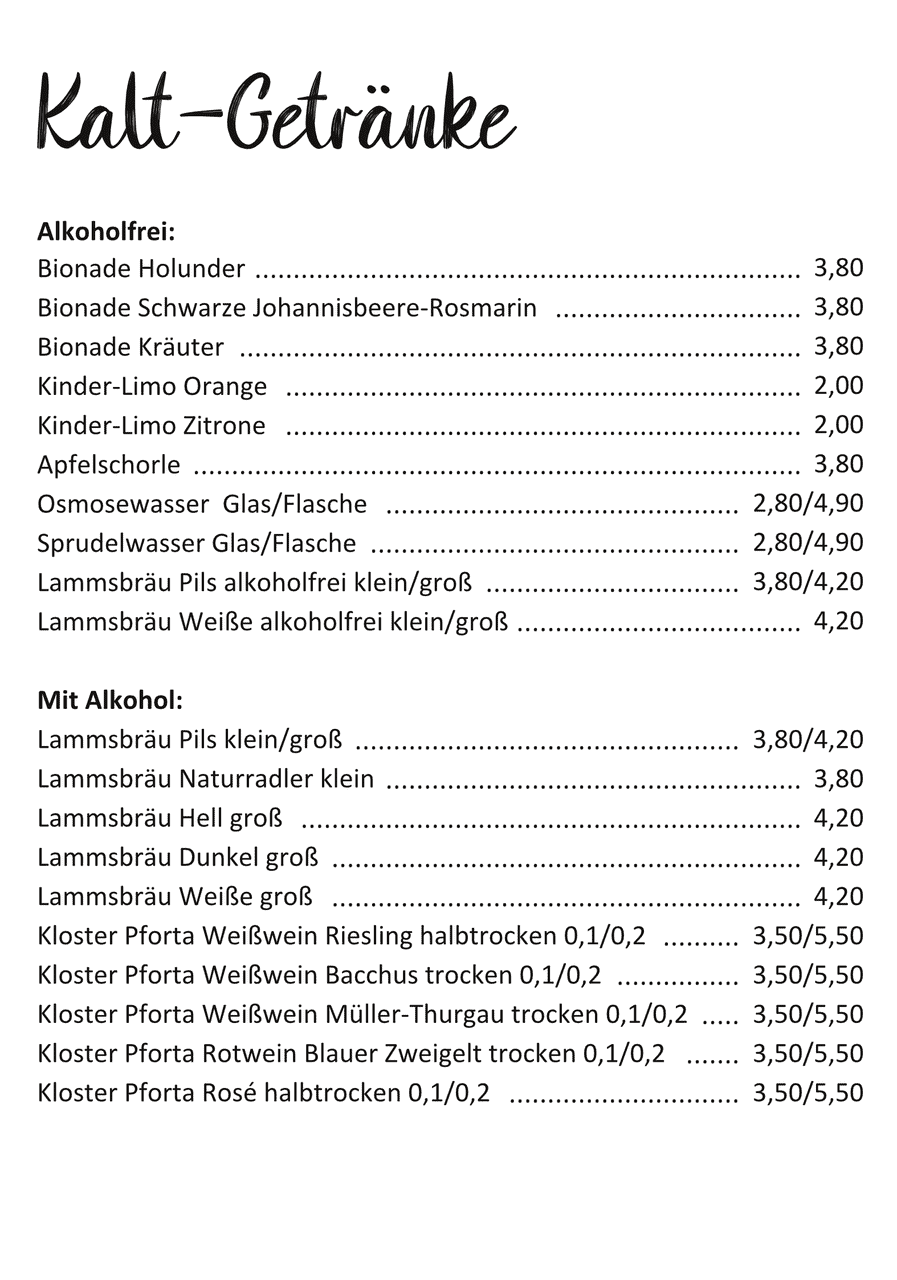 Es gibt jeweils einen Gruß aus der Küche, eine Vorspeise, das Hauptgericht und einen Nachtisch. Die Getränke sind inklusive.